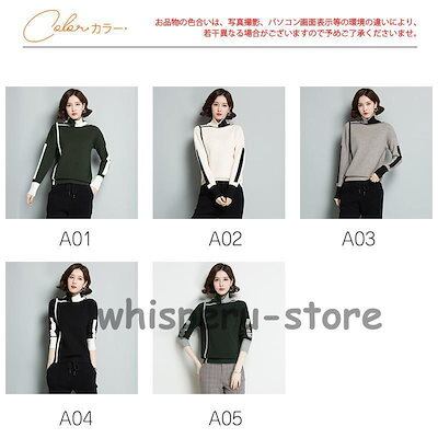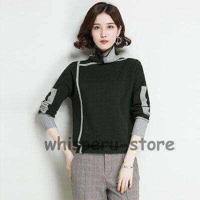 ニットセーター レディース ニット 長袖 ニットソー バイカラー 配色 ハイネック タートルネック 通勤 エレガント 秋冬 上品 韓国風