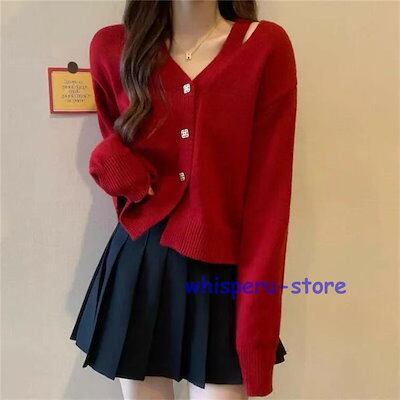 レディース トップス カーディガン ニット 秋 長袖 ホワイト ピンク イエロー レッド ライトニット Vネック ゆったり カジュアル ファッション 通勤 普段着