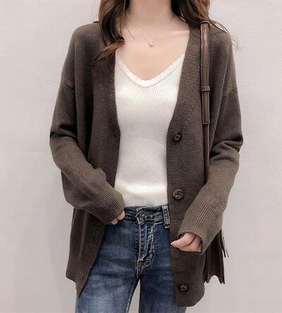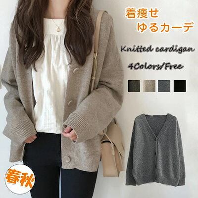 カーディガン レディース セーター ニット 春 秋 冬 体型カバー 上品 長袖 Vネック きれいめ 韓国ファッション 洗える 前開き アウタートップス カーデ シンプル ゆったり 前開き 高伸縮 小顔