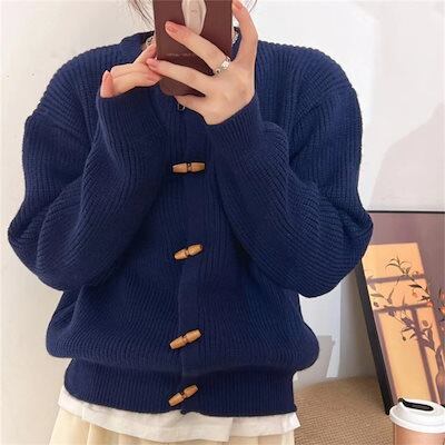 優しいツイストジャンパー女性牛角ボタンジャケット秋と冬の新しい緩い柔らかい気質ニットカーディガンレディース服の韓国語版