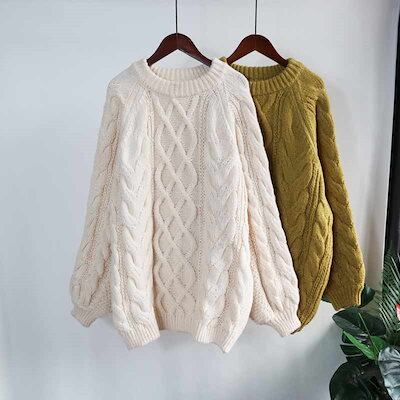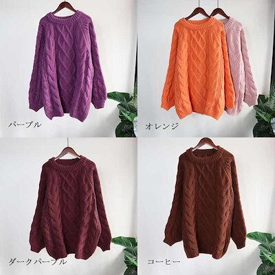 ニットセーター 秋冬 プルオーバー セーター ケーブル編み 厚手 トップス 長袖 大きいサイズ セーター レディース アウター ラウンドネック 秋 冬 ニットソー 無地 リブニット ベーシック インナ