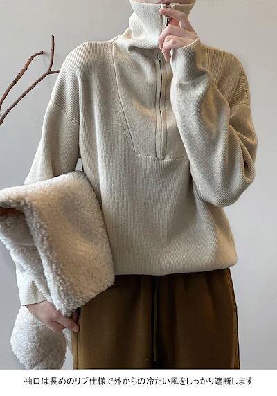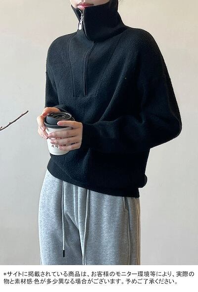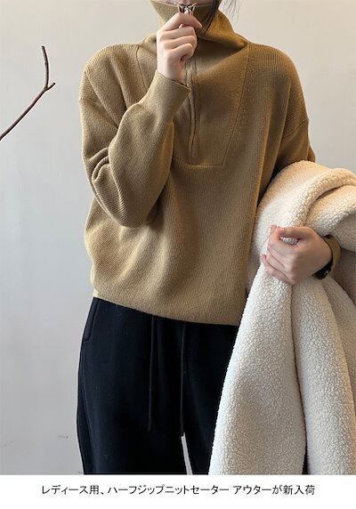 ニットセーター レディース アウター 無地 ハイネック 長袖 リブ編み ハーフジップ 防寒 保温性 トップス カジュアル 柔らかい 暖かい ゆったり 体型カバー シンプル 秋冬 快適 通勤 通学 出掛