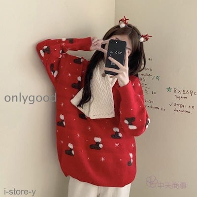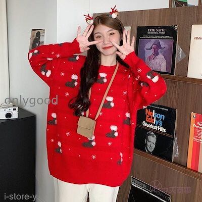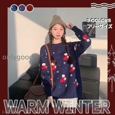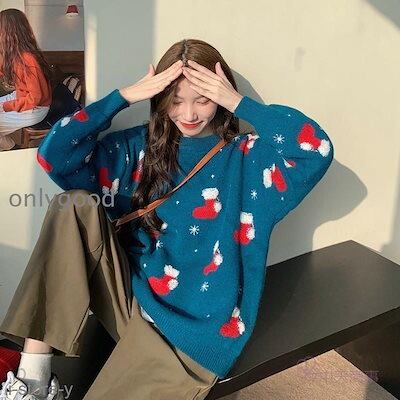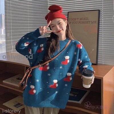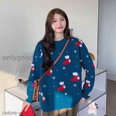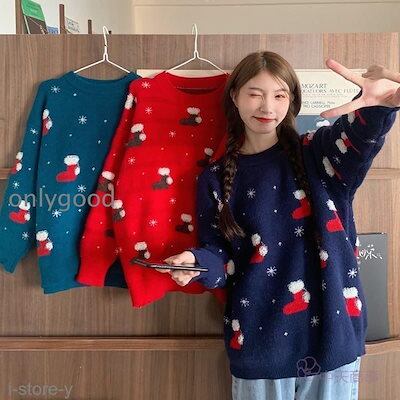 クリスマスセーター ニットセーター ニット レディース 丸首 防寒保暖 冬物 クリスマスソックス柄 温かい 冬アウター 長袖 厚手 暖かい きれいめ 大人 上品 通勤