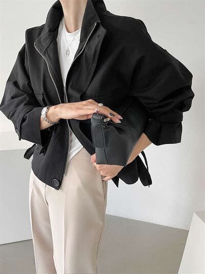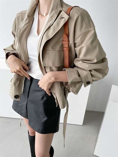 ジャケット レディース ショート丈 春 秋 ショートジャケット トップス 長袖 アウター フリル 羽織り ライトアウター ブルゾン コート 体型カバー お洒落 カーディガン カジュアル ポケット付き