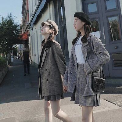 セットアップ レディース きれいめ 秋冬 40代 チェック スーツ ブー ロング丈 長袖 プリー