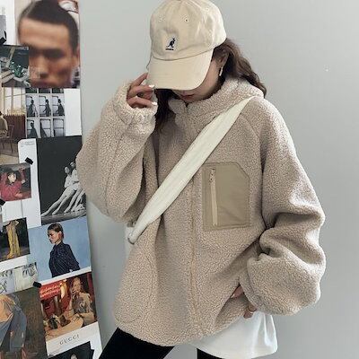 アウター 保温 ファスナー レディース 新型韓国版 厚手 パーカーと帽子 服