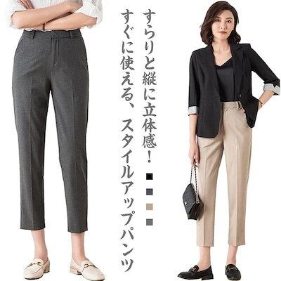 ズボン スラックス オフィス 通勤 アンクルパンツ 女性 無地 レディース ハイウェスト 受付 ビジネス フォーマル 会社 テーパードパンツ ボトムス 美脚 きれいめ 仕事着