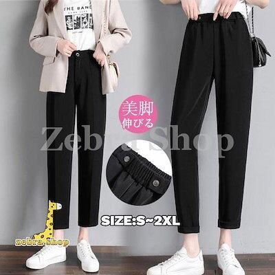 テーパードパンツ レディース 楽ちん 美脚 体型カバー 2タイプ ダブルボタン付き オフィス お出掛け ストレッチ 無地 春秋 大きいサイズ