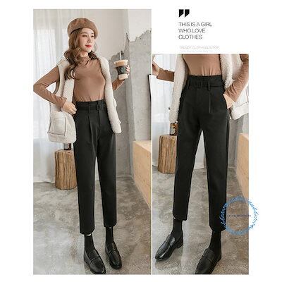 テーパードパンツ 秋冬 レディース ラシャ サルエルパンツ 厚手 スラックス オフィス 美脚 9分丈パンツ おしゃれ ギャザーパンツ 着痩せ