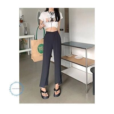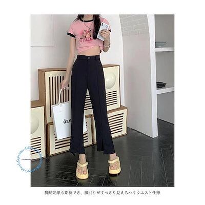 スラックス レディース フレアパンツ スリット入り 9分丈 ズボン スーツパンツ 夏 カジュアルパンツ 薄手 フレアスラックス ウエストゴム