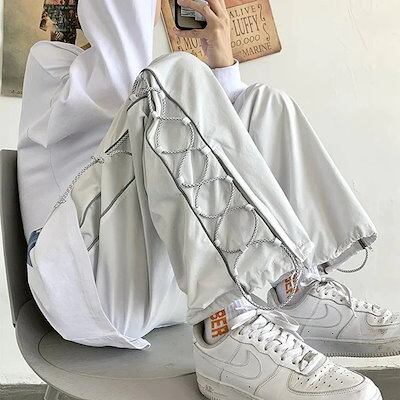 スラックスパンツ / 韓国ファッション/ゆるっとストリート お出かけ パンツ サイドライン レースアップ スポーティー ユニセックス レディース スタイルアップ 色っぽ 女っぽ カジュアル きれいめ