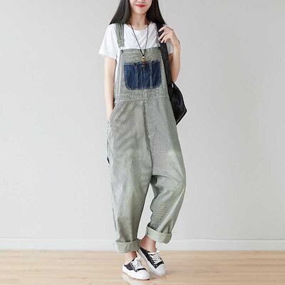 新品 ストライプ オーバーオール オシャレ レディーズ人気 デニムパンツ ガウチョパンツ カジュアル 大きいサイズオールインワン レディース きれいめ 春 夏 秋 ボトムス 大きいサイズ