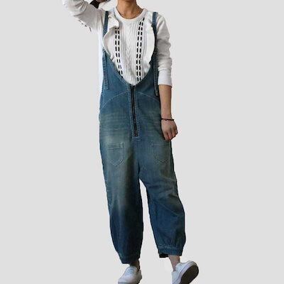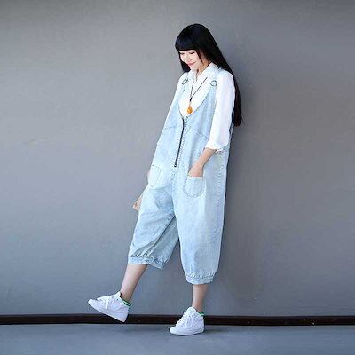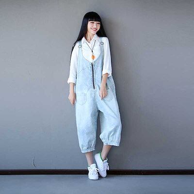 ゆったり ジーンズ オーバーオール レディーズ 韓国風 ガウチョパンツ ゆったり 上質感 無地 九分丈
