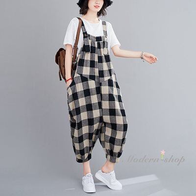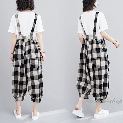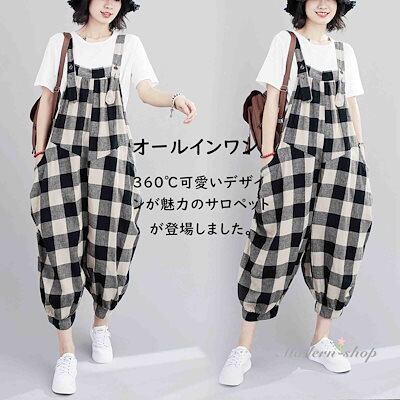 オーバーオール パンツ サロペット チェック 体型カバー 大人可愛い レディース ロンパース オールインワン 大きいサイズ ボトムス 夏 春 作業服 ジャンパースカー キャミ カジュアル サルエルパン