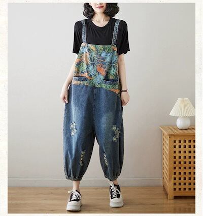 オーバーオール サロペット デニム ボトムス レディース きれいめ パンツ 夏 春 オールインワン 花柄 ジャンパースカー キャミ カジュアル サルエルパンツ フレアー ジーンズ テーパード ワイドパ