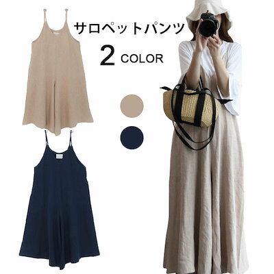 サロペットパンツ レディース オーバーオール ワイドパンツ ガウチョパンツ 綿麻パンツ リネンパンツ ロングパンツ オールインワン 夏服 普段着 ロング丈 ルーズ ゆったり 韓国ファッション リラック