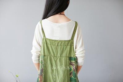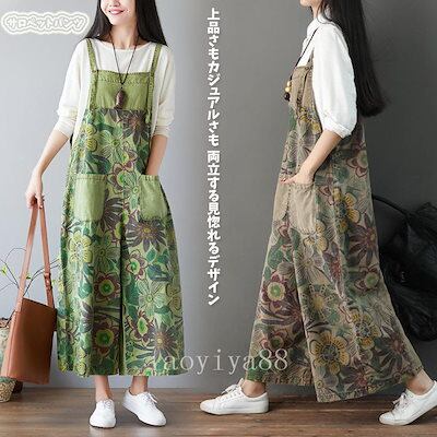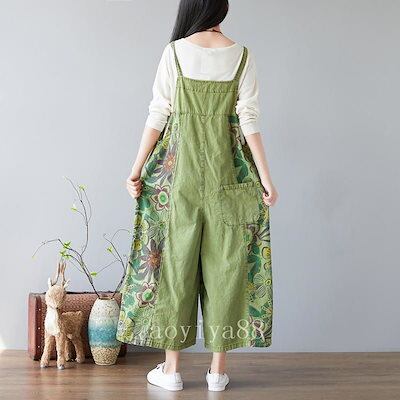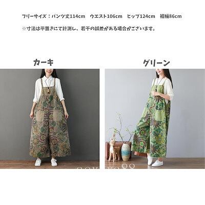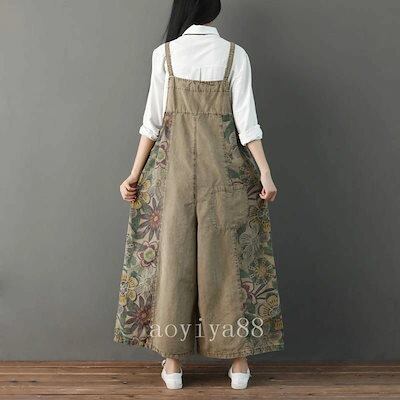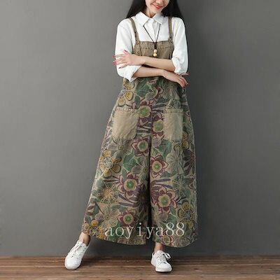 サロペット オーバーオール レディース 花柄 ワイドパンツ ロングパンツ 大きいサイズ レトロ ポケット付