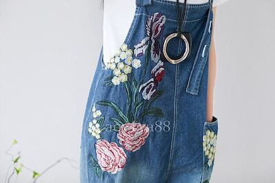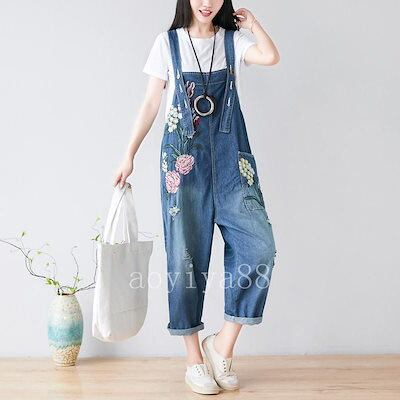 刺繍 サロペット オーバーオール レディース レトロ 文芸風 ジーンズ ゆったり デニムお洒落 ファッション