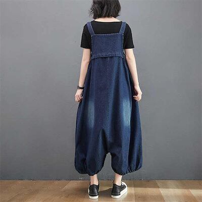 サロペット パンツ オールインワン レディース パンツドレス デニム パンツ オーバーオール デニム サロペットパンツ 無地 体型カバー 着痩せ ロング丈 カジュアル ゆったり 重ね着 レイヤード き