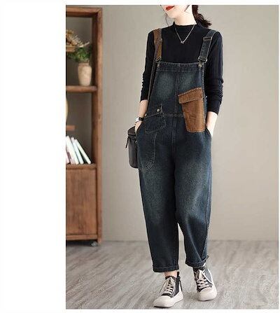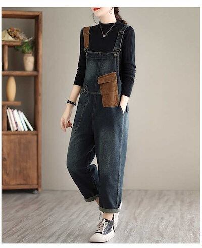 サロペット パンツ レディース オールインワン パンツドレス デニム パンツ オーバーオール デニム サロペットパンツ 無地 体型カバー ワイドパンツ 着痩せ ロング丈 ゆったり カジュアル きれいめ