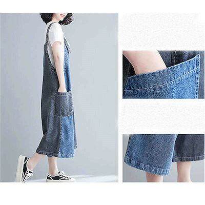 サロペット デニム レディース 大きいサイズ デニム ロングパンツ オールインワン パンツ ワイドパンツ サロペット オーバーオール 切替 ロング ボトムス 体型バー ゆったり 着痩せ ポケット付き