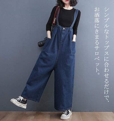 サロペット デニム ボトムス レディース ワイドパンツ デニム ロングパンツ 大きいサイズ ロング丈 オールインワン パンツ オーバーオール 体型バー ゆったり 着痩せ ポケット付き 通勤 通学 20