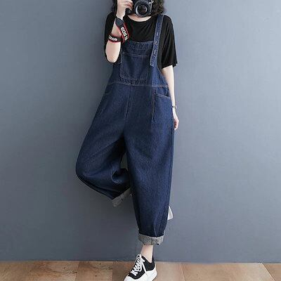 サロペット パンツ レディース ボトムス デニムパンツ デニム オールインワン 春 サロペットパンツ 秋 ロングパンツ ジーンズ オーバーオール ポケット付き ワイドパンツ ズボン ロング丈 大きいサ