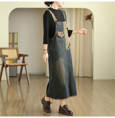 オーバーオール スカート レディース デニム サロペット オールインワン ジャンパースカート サロペットスカート デニムスカート ジャンスカ デニムワンピース ロング 春 夏 秋 冬 M/L/XL/2