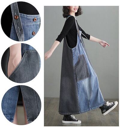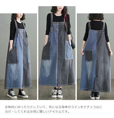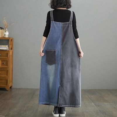 サロペット レディース オールインワン デニムワンピース 大きいサイズ オーバーオール 春夏秋冬 デニムワンピース オールインワン サロペットスカート ロング ゆったり 体型カバー 可愛い カジュアル
