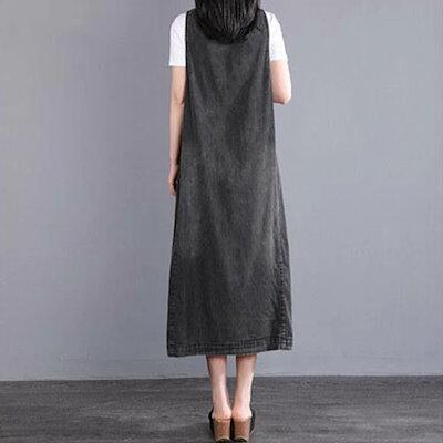 デニム サロペット ワンピース レディース Vネック ロング ジャンパースカート 夏 オーバーオール 学生 ノースリーブ ゆったり 体型カバー オールインワン 大人 女の子 おしゃれ 大きいサイズ