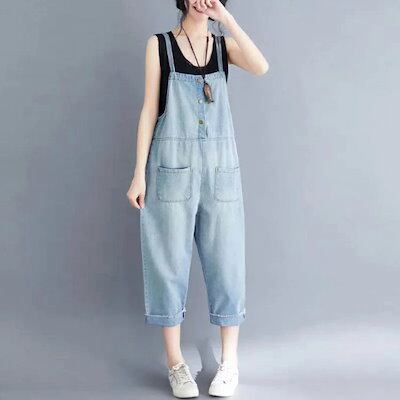 デニムサロペット サロペット オールインワン サルエルパンツ デニム レディース オーバーオール ワイド ゆったり 大人 パンツ サロペット 可愛い きれいめ カジュアル ゆったり目 パンツ ボトムス