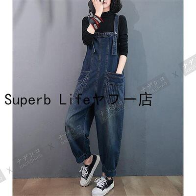オーバーオール サロペットデニムパンツ 春秋 レディース 9分丈 ロングパンツ ズボン デニム パンツ 体型カバー 大きいサイズ