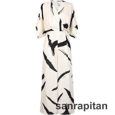 ジャンプスーツ オールインワン レディース オーバーオール 薄手 夏服 Vネック 7分袖 ゆったり 配色 カジュアル 結婚式 パーティー