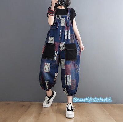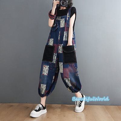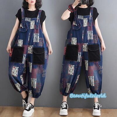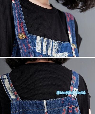 サロペット レディース サロペット パンツ オーバーオール オールインワン サスペンダー 体型カバー 着痩せレデニムサロペット 配色B45