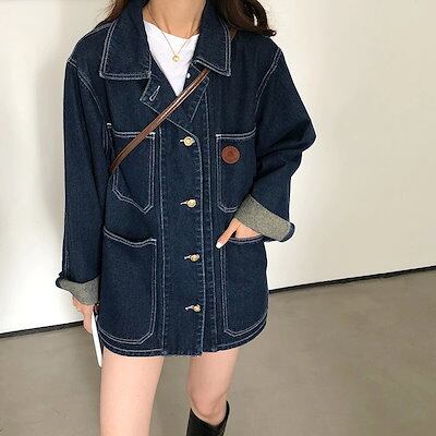 AWアウター2024新作 おしゃれ ゆったり 百掛け デニムジャケット セミロング ジャケットトップス 着痩せ 気質