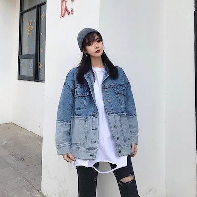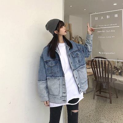 AWアウター2024新作 おしゃれ 気質 デニムジャケット コントラストカラー ジャケット 着痩せ 百掛け トップス