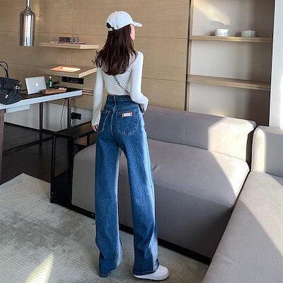 2024新作 おしゃれ ゆったり デニムパンツ 百掛け 着痩せ モップパンツ ワイドパンツ脚長効果!スキニーパンツ ワイドパンツ スラックスパンツ デニムパンツ