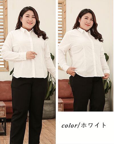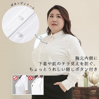 Yシャツ ワイシャツ ぽっちゃり レディース 立ち襟 通勤 事務服 就活 就職活動 リクルート 面接 開襟 トップス 会社 仕事着 フォーマル シャツ ブラウス 長袖 スーツ インナー オフィス ビジ