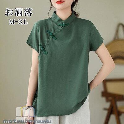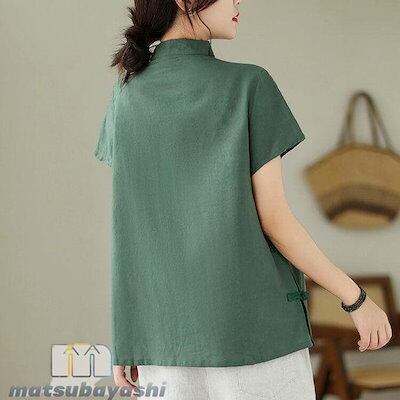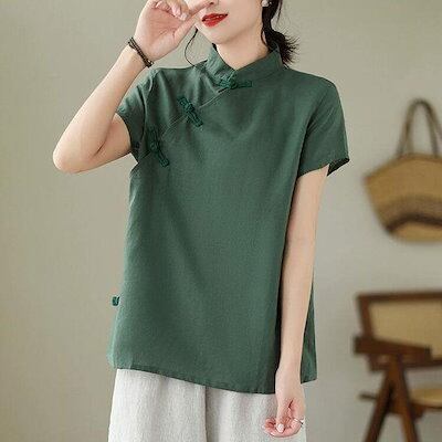 ブラウス リネンブラウス チャイナ風 レディース 半袖 立ち襟 斜めボタン 立ち襟 斜めボタン チャイナトップス プルオーバー チャイナボタン ゆったり 薄手