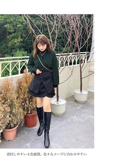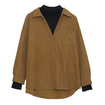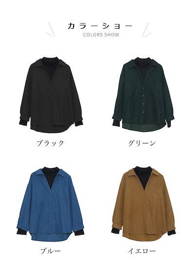 シャツ ブラウス 長袖 レディース 長袖シャツ 大きいサイズ フェイクレイヤード ハイネック 折り襟 飾りボタン ポケット 柔らかい 肌着 アウター トップス 薄手 シンプル 無地 快適 ゆったり レ
