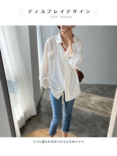 とろみシャツ レディース シャツ 長袖 ゆったり 無地 角襟 ゆるシャツ 薄手シャツ 無地シャツ バストポケット付き シャツブラウス テールカット ロングシャツ トップス 冬新作