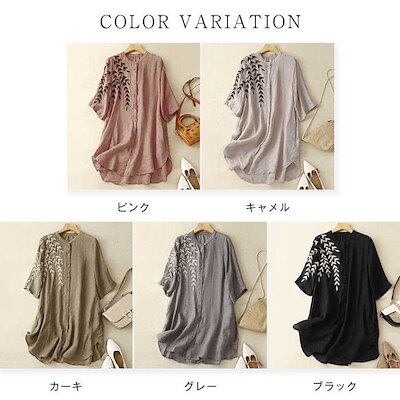 シャツ ブラウス シャツワンピース ロングシャツ 新作 チュニック トップス 刺繍 花柄 綿 コットン ロング レディース 春 夏 五分袖 立ち襟 ボタン 体型カバー ゆったり Aライン レトロ お洒