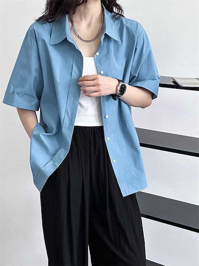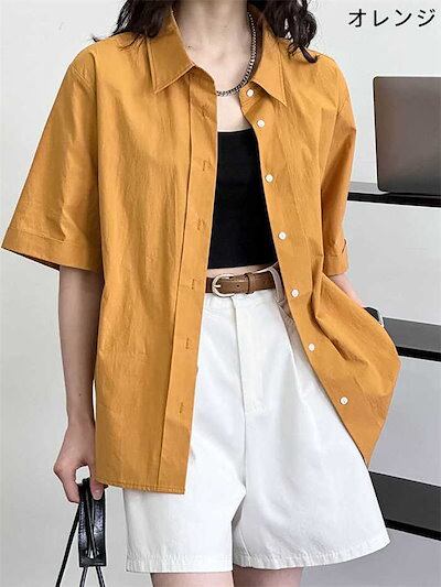 シャツ ブラウス 新作 レディース シャツブラウス トップス ゆったり 無地 前開き 半袖 シャツ襟 シンプル ボタン 春 夏 体型カバー おしゃれ 可愛い 大きいサイズ 20代 30代 40代 50