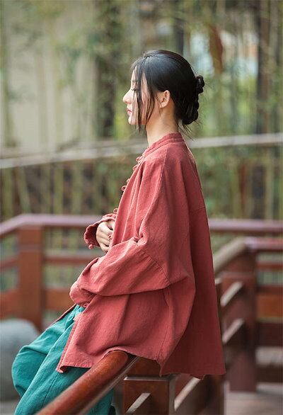 シャツ レディース おしゃれ ブラウス シャツブラウス 長袖 リネンシャツ リネン トップス ロングシャツ カーディガン ゆったり レディースシャツ 大人 チャイナボダン 立ち襟 シンプル カジュアル