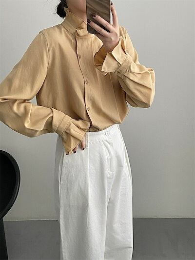 立ち襟 フリルブラウス レディース フレアー袖 透けない 春 夏 秋 冬 長袖 無地 ゆったり おしゃれ 着痩せ ビジネス ファッション オフィス カジュアル スーツ インナー チュニック 上品 大人