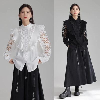 【J.Fashion】 202今週の割引は 25% オフです4春新品 お姫様 刺繍 ブラウス レース 透かし彫り スタンド襟 レディース シャツ 関連商品は店で購入可能