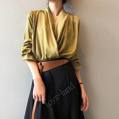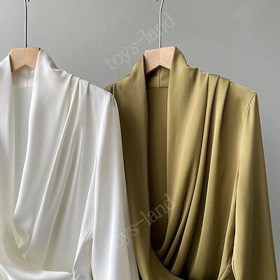 ブラウス フリル襟 レディース シャツ トップス 長袖 Vネック セレモニー 光沢感 フォーマル タック ギャザー キレイめ オフィスカジュアル 春 夏 秋 大人可愛い キレイめ 通勤 オフィス 仕事