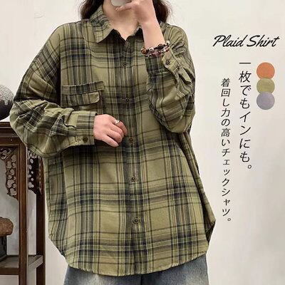 シャツ レディース チェック柄 長袖 ブラウス 入学式 トップス オフィス 長袖 折り襟 春秋 おしゃれ ゆったり きれいめ カジュアル 体型カバー お呼ばれ 通勤 通学 卒業式 卒園式 入園式 オレ