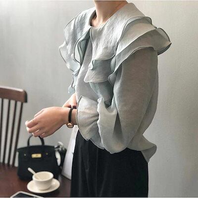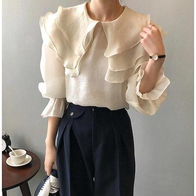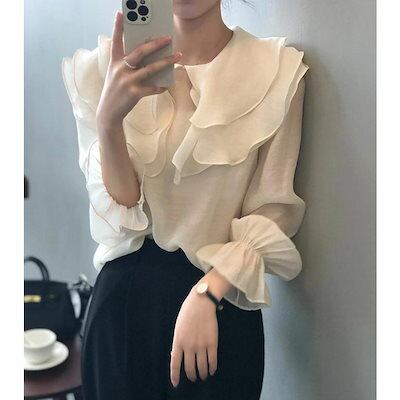【毎日厳選 】 ブラウス ボリューム袖 レディース 長袖 秋 春 夏 トップス シャツ レディース 長袖 ケープ襟 きれいめ オフィスカジュアル 春夏 フリル 透け感