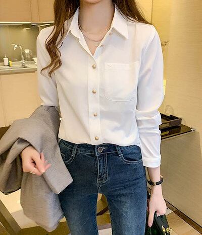シフォン シャツ ブラウス レディース 長袖 スーツ インナー 白シャツ トップス フォーマル 無地 ホワイト 白 オフィス ビジネス 立ち襟 開襟 春秋 春 秋 お洒落 通勤 ワイシャツ カジュアル